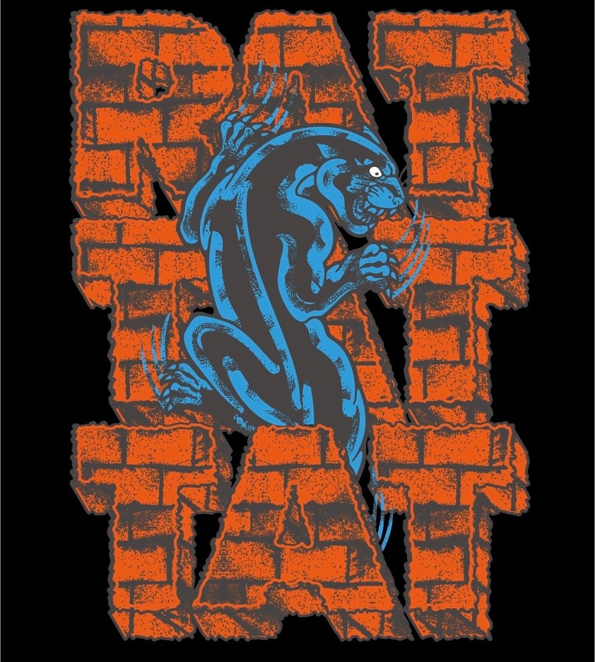 フロントにはレンガのようなテクスチャで組まれた「RATTATTAT」ロゴと、
